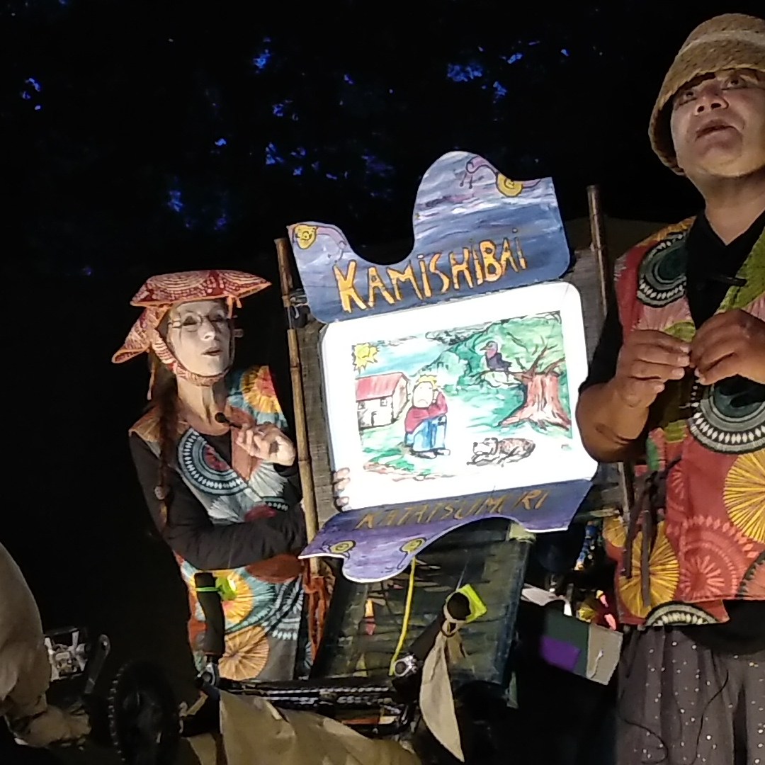 Ce spectacle de 30 mn est présenté sous forme de Kamishibai ( technique de montreurs d’images au Japon au 19 ème siècle) .